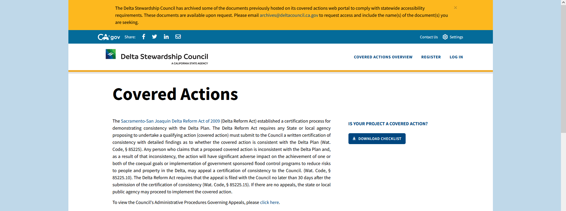 Visit the Council’s Covered Actions Portal to access the latest covered action-related documents and information.